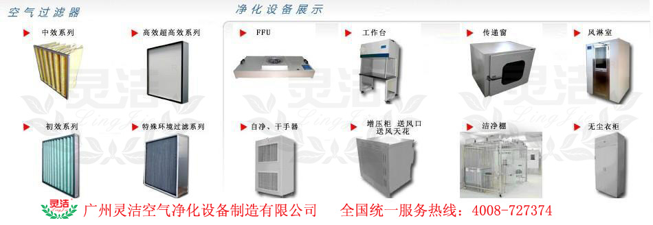 空氣過濾器、空氣凈化設備專業(yè)廠家,通過ISO9001、ISO14001、CE、ROSH等多項國際認證,100%品質(zhì)保證!“靈潔”牌空氣過濾器及凈化設備產(chǎn)品均按國家標準全檢合格出廠,廠家長期提供技術支持, 歡迎來電咨詢!專業(yè)生產(chǎn)“靈潔”牌G級初效過濾器,F(xiàn)級中效過濾器,H級高效過濾器,U級超高效過濾器及各類液槽式過濾器、耐高溫過濾器、化學過濾器、PM2.5過濾器、HEPA濾網(wǎng)等;專業(yè)生產(chǎn)“靈潔”牌風淋室、傳遞窗、超凈工作臺、FFU(風機過濾單元)、層流送風天花、百級層流罩、DOP高效送風口、潔凈棚、新風柜、生物安全柜等 聯(lián)系人 : 劉小姐 18925063248 龔先生 13710142110